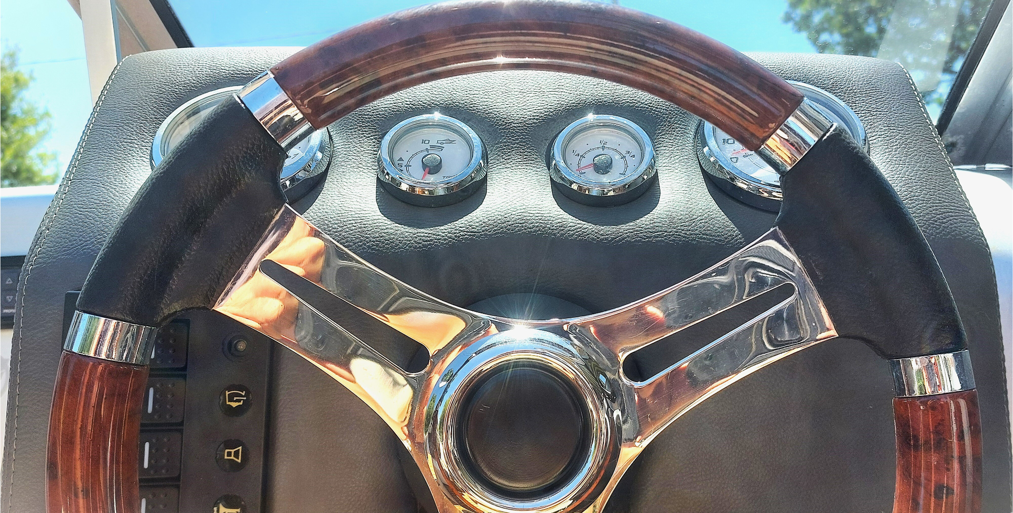 Timone in radica e pelle