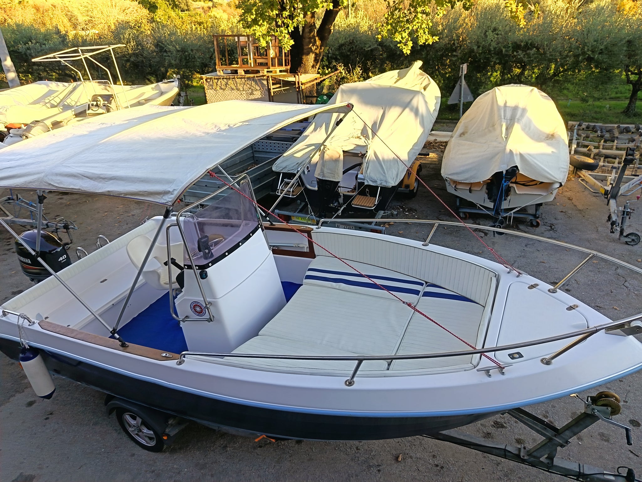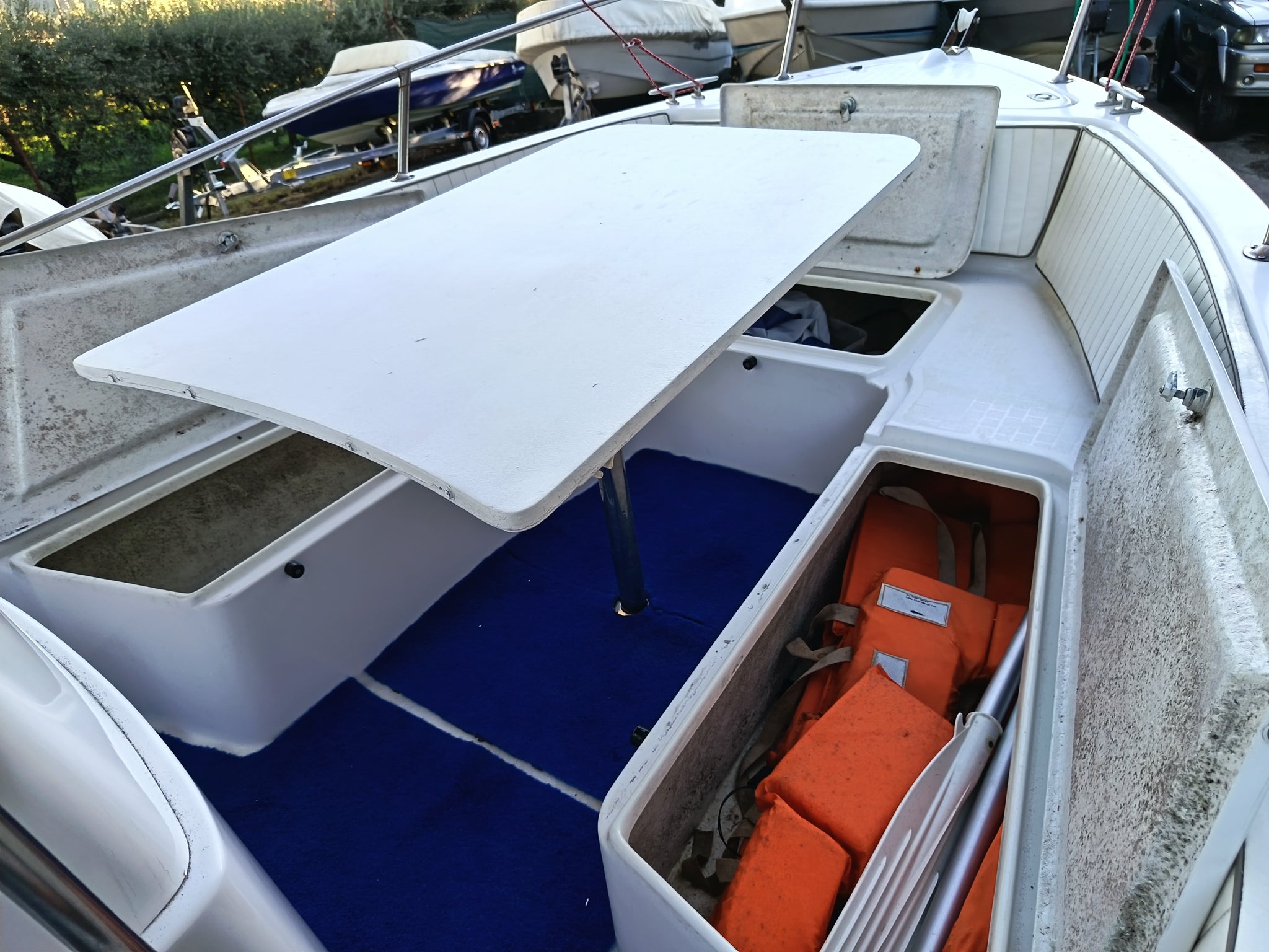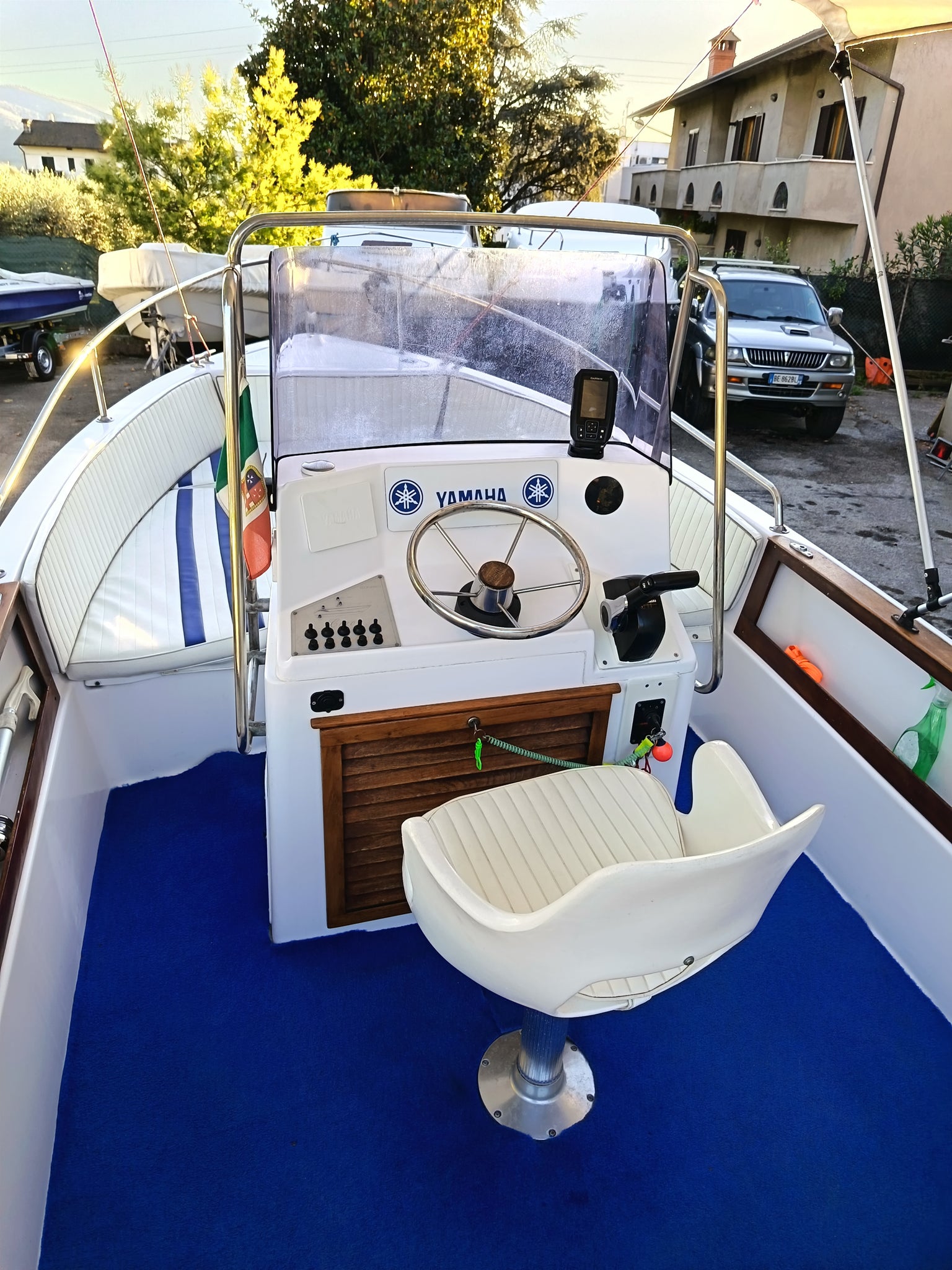 Moquette interna/Tendalino 3 archi alluminio /Scaletta di risalita pieghevole in acciaio con 3 gradini di legno/Telo per rimessaggi/Pompa sentina/Impianto doccia/Serbatoio carburante fisso in PVC 50 lt./Luci di via/Tromba/ presa 12volt/Staccabatteria/4 giubbotti salvataggio/Salvagente anulare e cima galleggiante/Mezzomarinaio/4 Parabordi/Coppia di cime/Ancora/