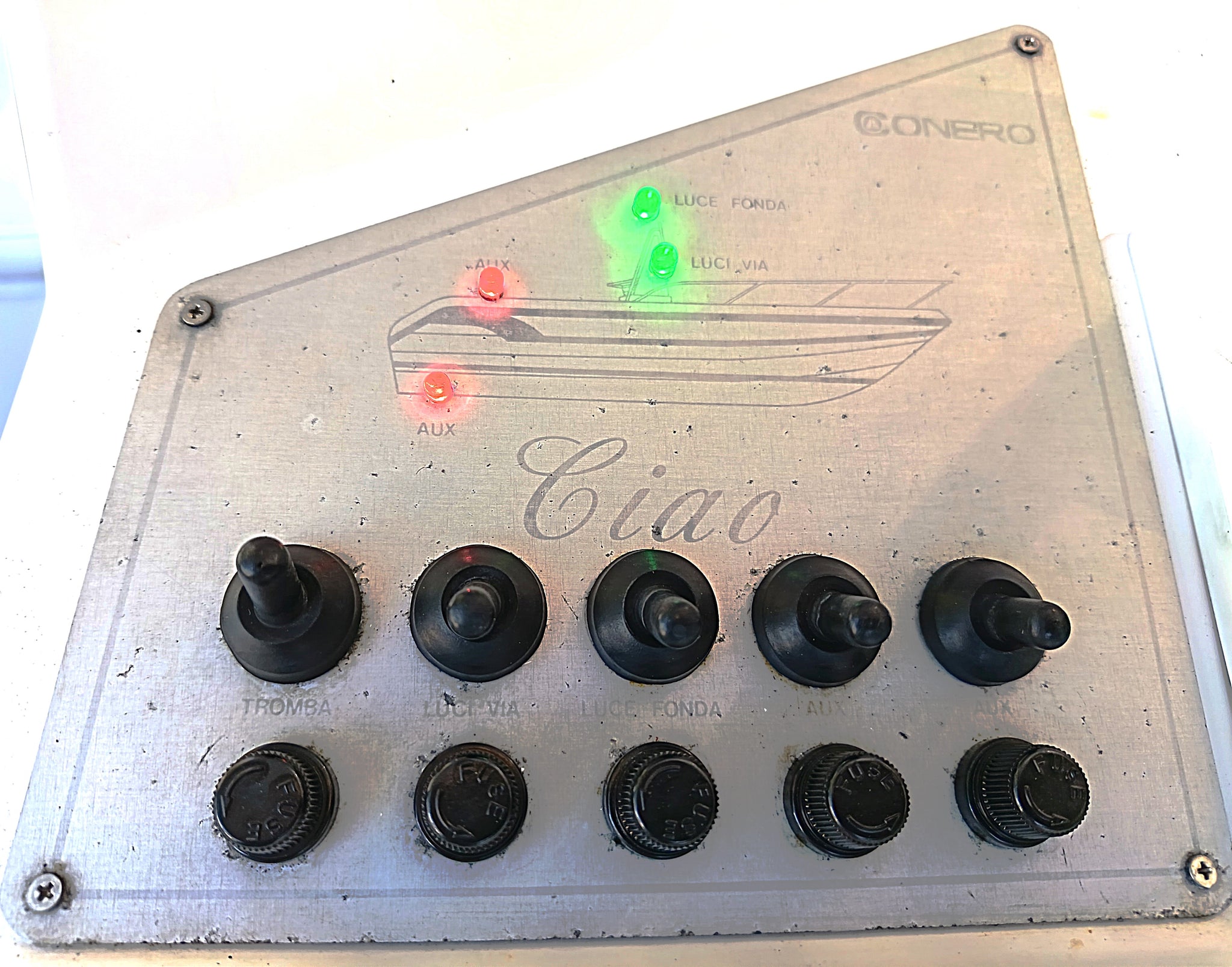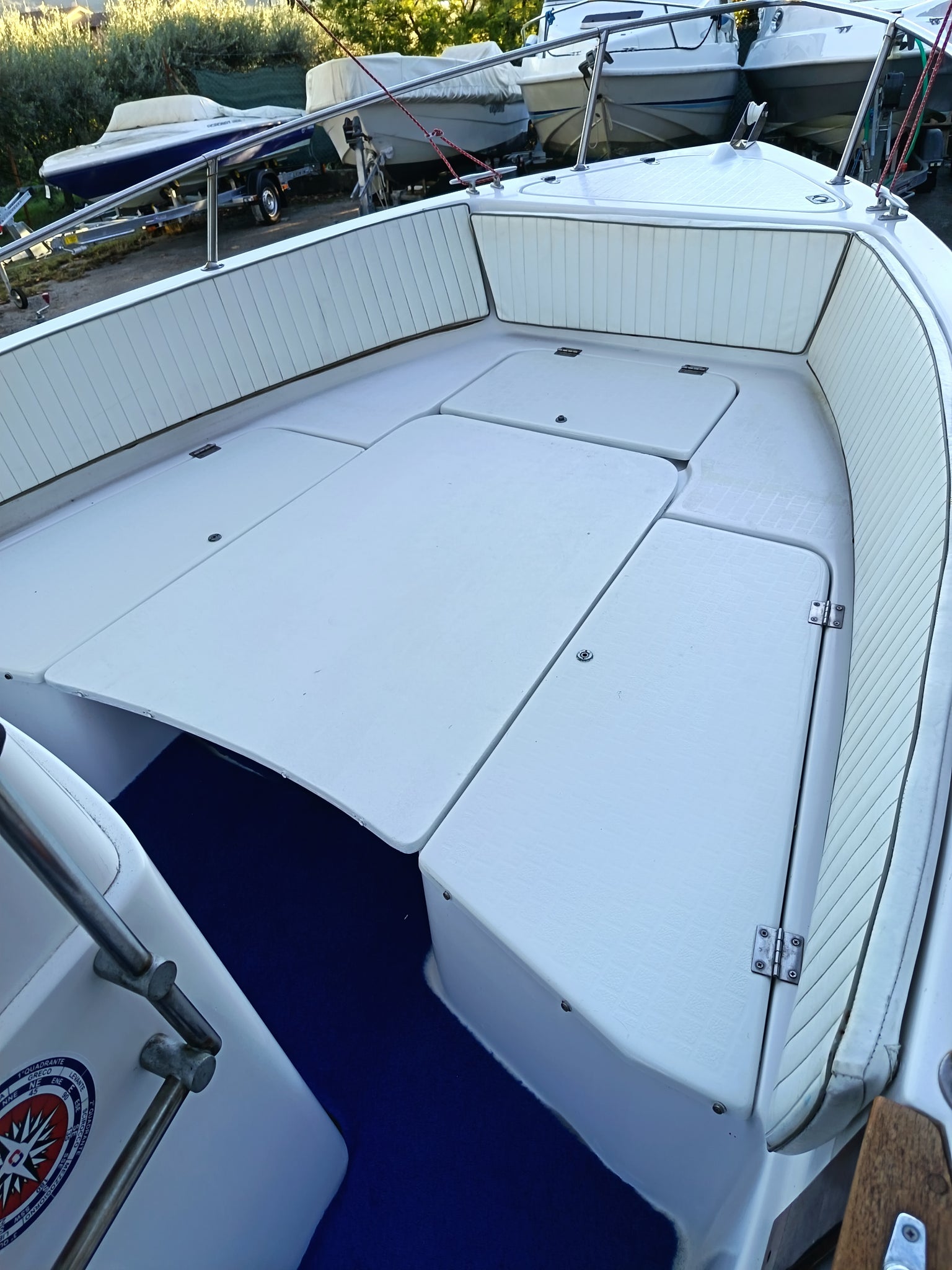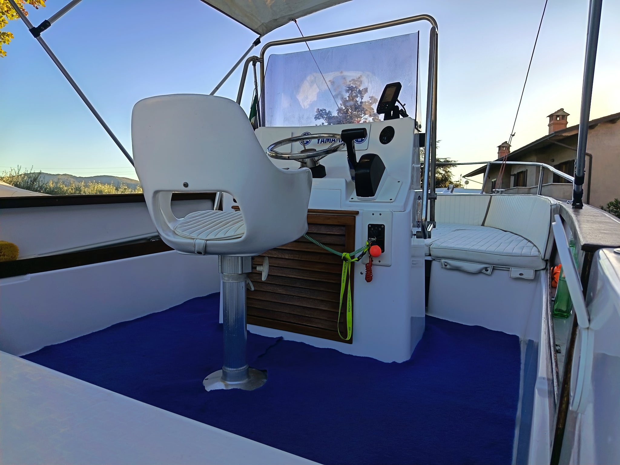 Moquette interna/Tendalino 3 archi alluminio /Scaletta di risalita pieghevole in acciaio con 3 gradini di legno/Telo per rimessaggi/Pompa sentina/Impianto doccia/Serbatoio carburante fisso in PVC 50 lt./Luci di via/Tromba/ presa 12volt/Staccabatteria/4 giubbotti salvataggio/Salvagente anulare e cima galleggiante/Mezzomarinaio/4 Parabordi/Coppia di cime/Ancora/