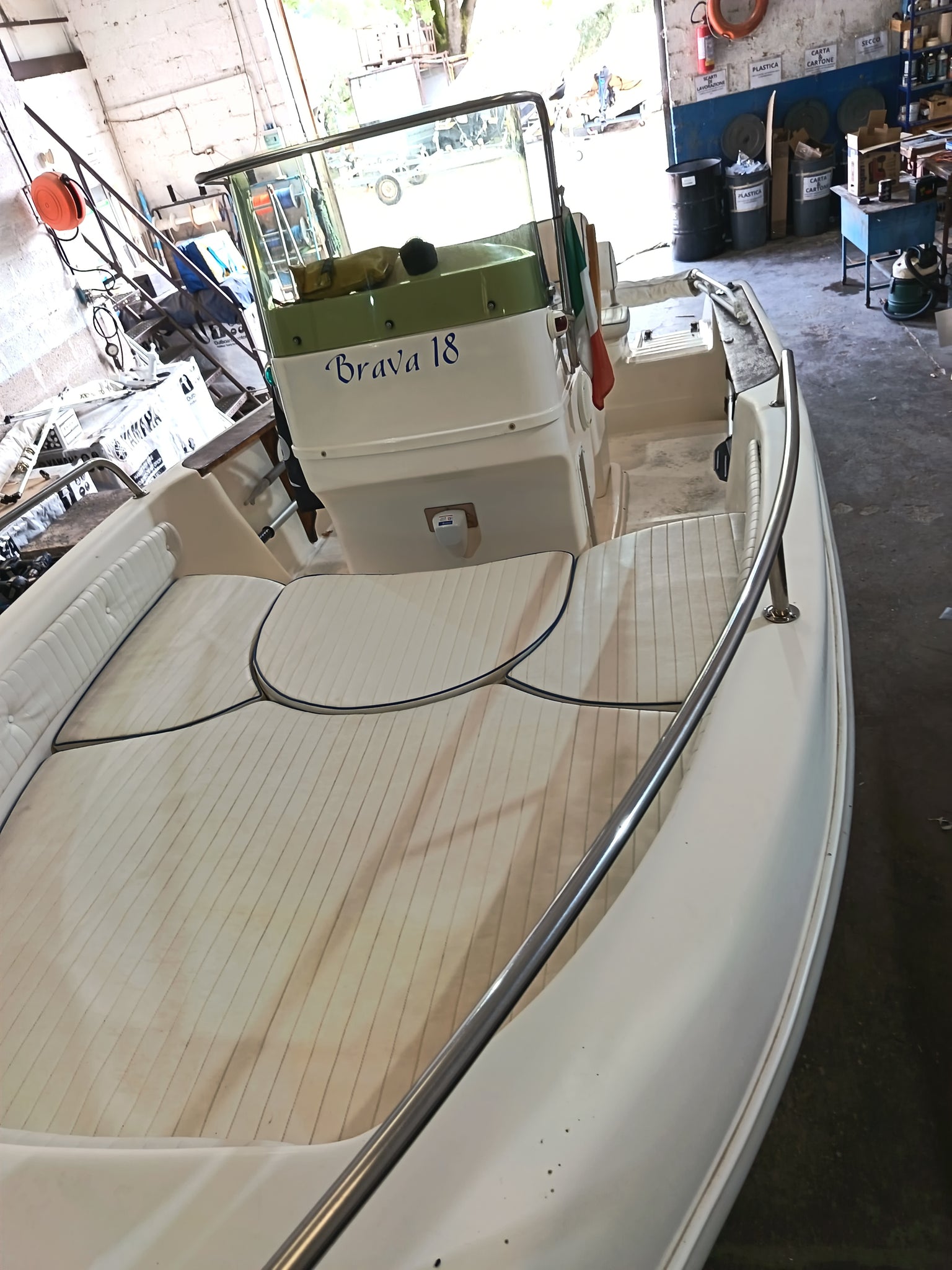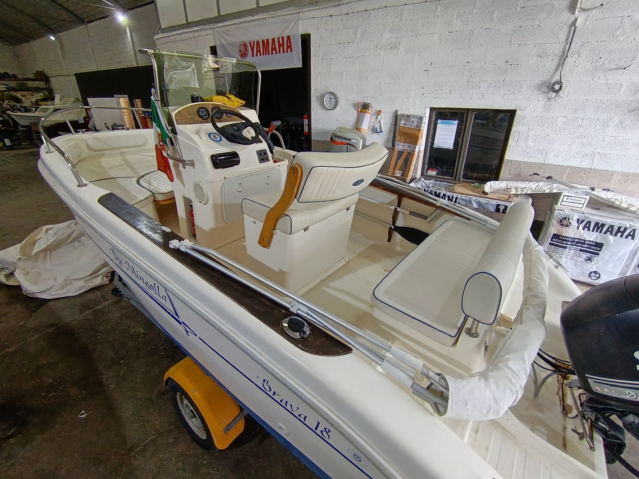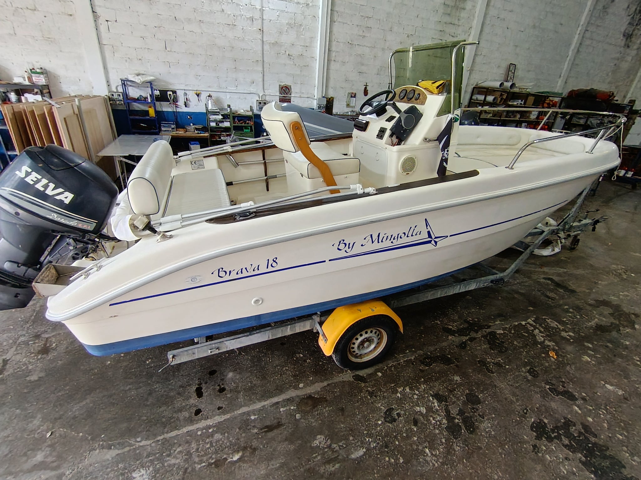 Brava 18 del cantiere Mingolla è una barca pensata per chi ama il mare e l'avventura, grazie alle sue murate alte e agli ampi passaggi laterali rendono questa barca ideale per le uscite di pesca e la gestione dei passeggeri a bordo, ampio gavone di prua sopra al quale si estende un grande prendisole da 2/3 persone. Motore della casa Selva, consumi ridotti, utilizzo senza patente.